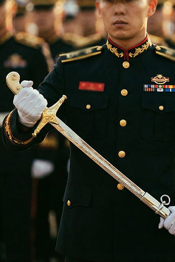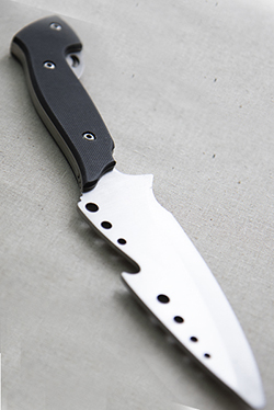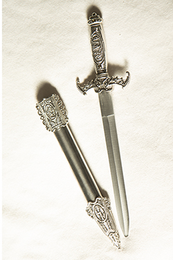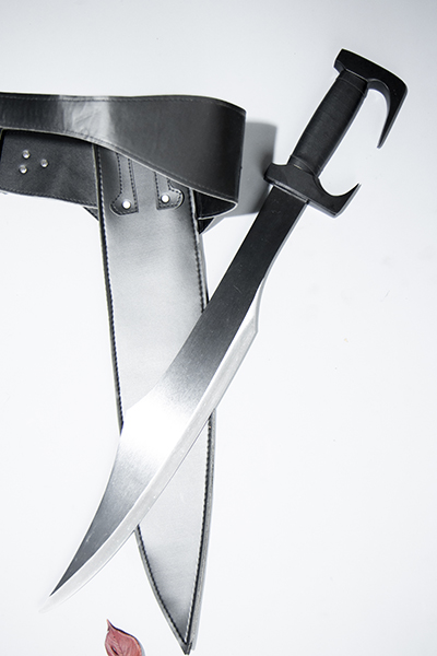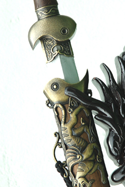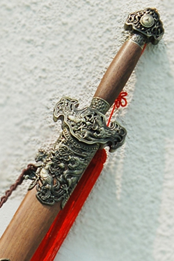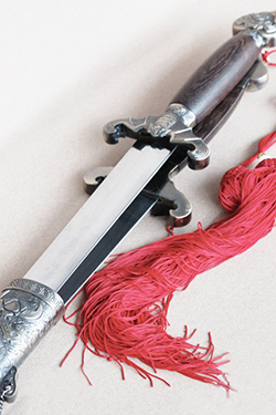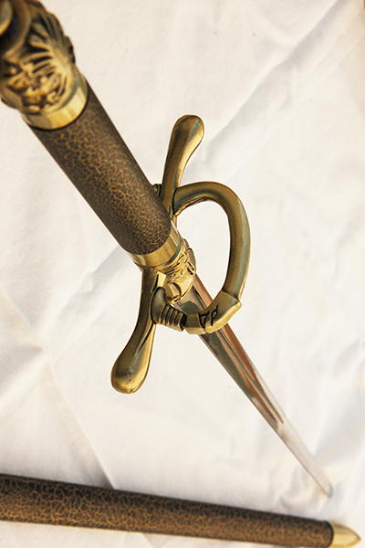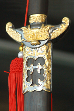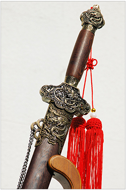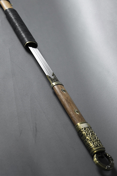 몸통의 구멍에 손가락을 넣고 찌르기와 베기를 하는 장식용 검 입니다